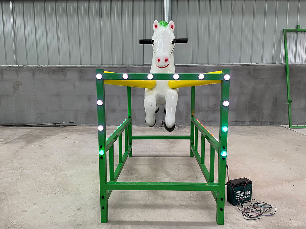我公司生產(chǎn)的跳跳馬是一款適合年齡比較小的孩子玩的小型無動(dòng)力網(wǎng)紅設(shè)備。它彌補(bǔ)了無動(dòng)力樂園很多大型項(xiàng)目年齡小的孩子不能玩的缺點(diǎn)。是無動(dòng)力親自樂園、農(nóng)莊、景區(qū)、必備的游樂項(xiàng)目。
